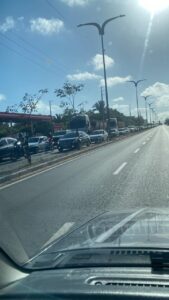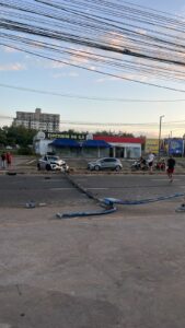 De acordo com informações iniciais, uma mulher que conduzia o veículo perdeu o controle e derrubou um poste. A ocorrência impacta o trânsito nos dois sentidos da via: em direção à Raposa e também ao Olho d’Água.